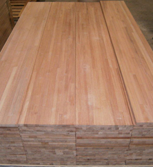 На фотографиях представлены декинг и клееный щиты из древесины мербау.
